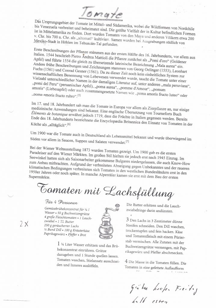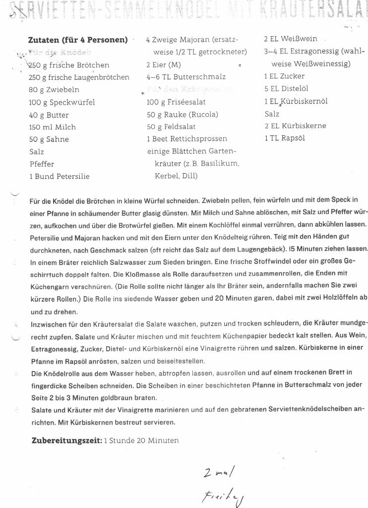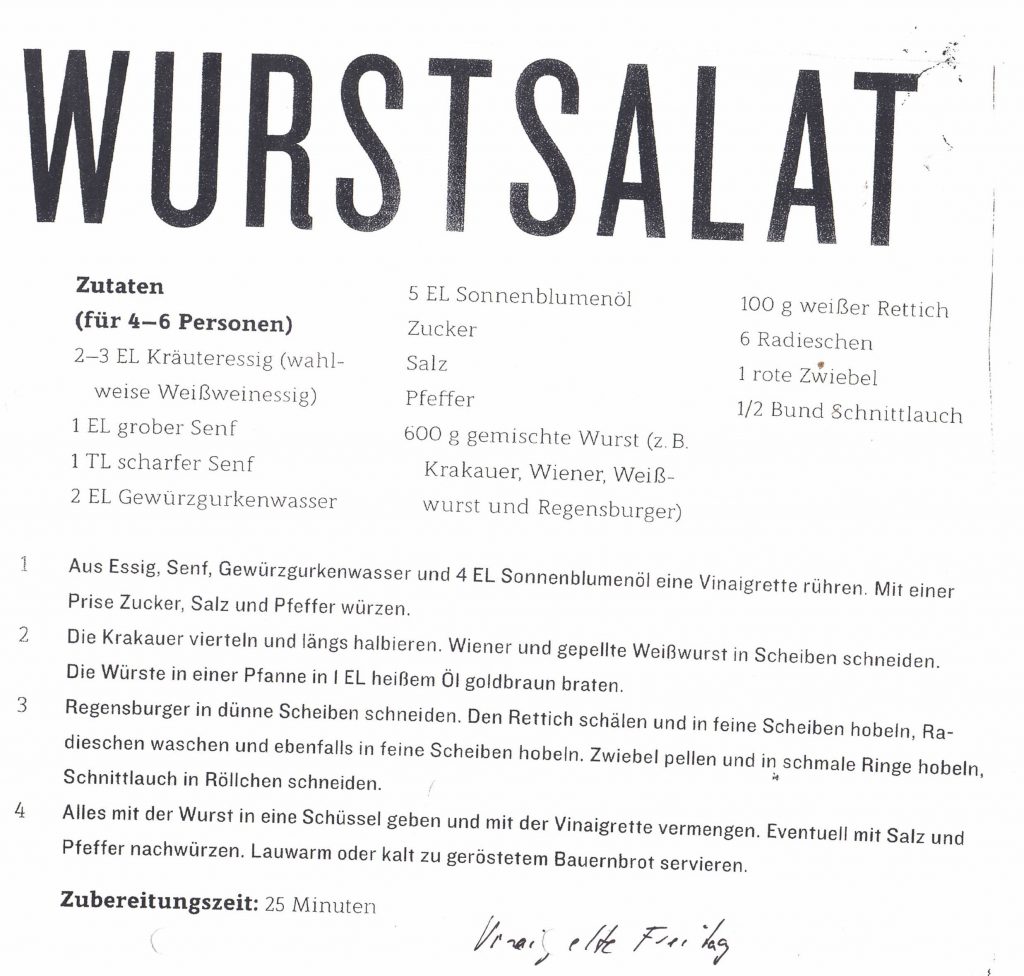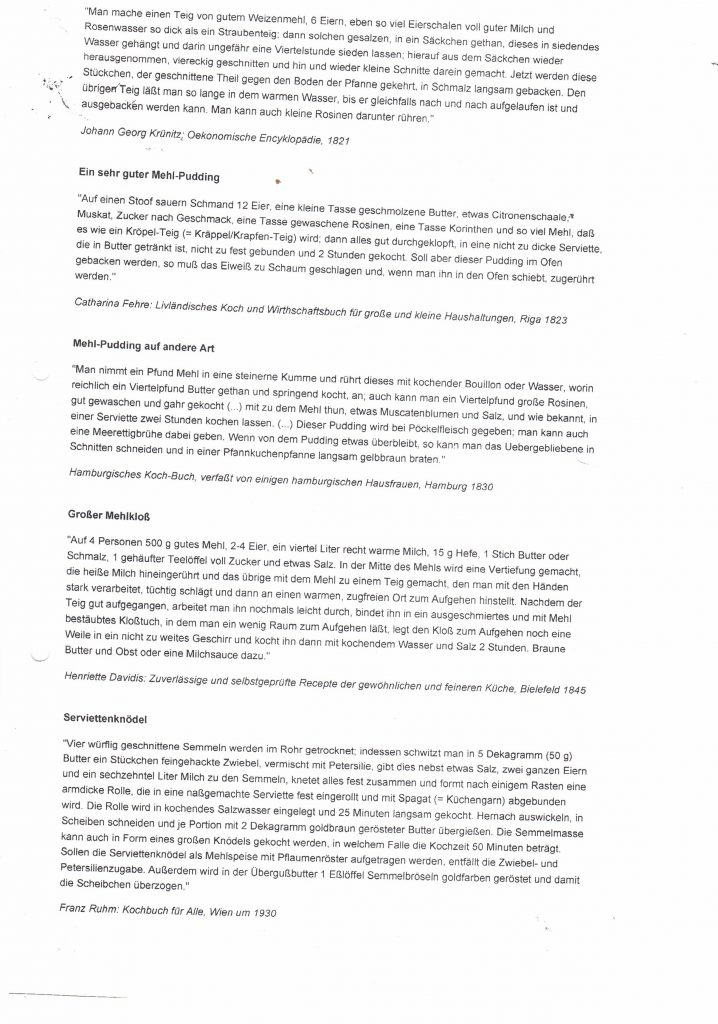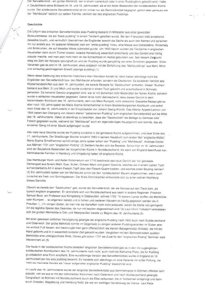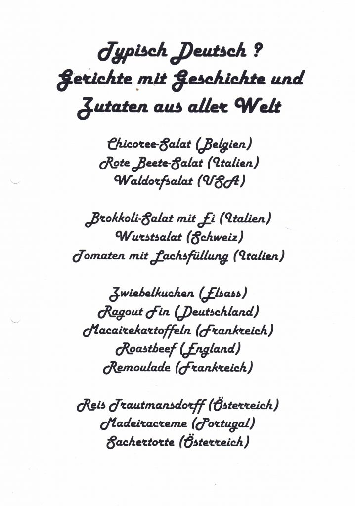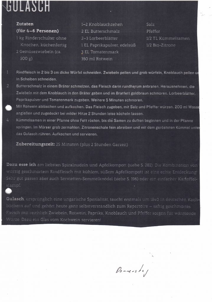 Also das letzte Fest: wie immer brauchte ich ein kulinarisches Motto. Ich dachte daran, mal traditionelle deutsche Gerichte zu kochen. Meine Ideen führten mich schnell zu der Frage: Was sind überhaupt deutsche Gerichte? Es gab doch viele heimat bezogene Speisen, die so deutsch gar nicht waren, z.B. das allseits beliebte Gulasch. Mir fiel ein Buch in die Hände „Gerichte mit Geschichte“ von . Das interessierte mich, und ich begann für einige der ausgewählten Speisen zu recherchieren, was es damit auf sich hat. Außerdem galt es, für heute taugliche Rezepte zu finden. Die Ergebnisse will ich euch nicht vorenthalten. Wegen der besseren Lesbarkeit stelle ich die Rezepte ohne besondere Rechercheergebnisse voran. Und ich füge die Kopien für meine Kochmannschaft ein, so wie ich sie kopiert und mit Anmerkungen versehen hatte. Und- wie man sieht- habe ich meine Inspiration und Erkenntnisse nicht nur aus Büchern, sondern auch aus den Untiefen des www. Korrekte Quellenangaben wären da eine Sisyphusarbeit, die ich mir hier auf meiner privaten Website spare.